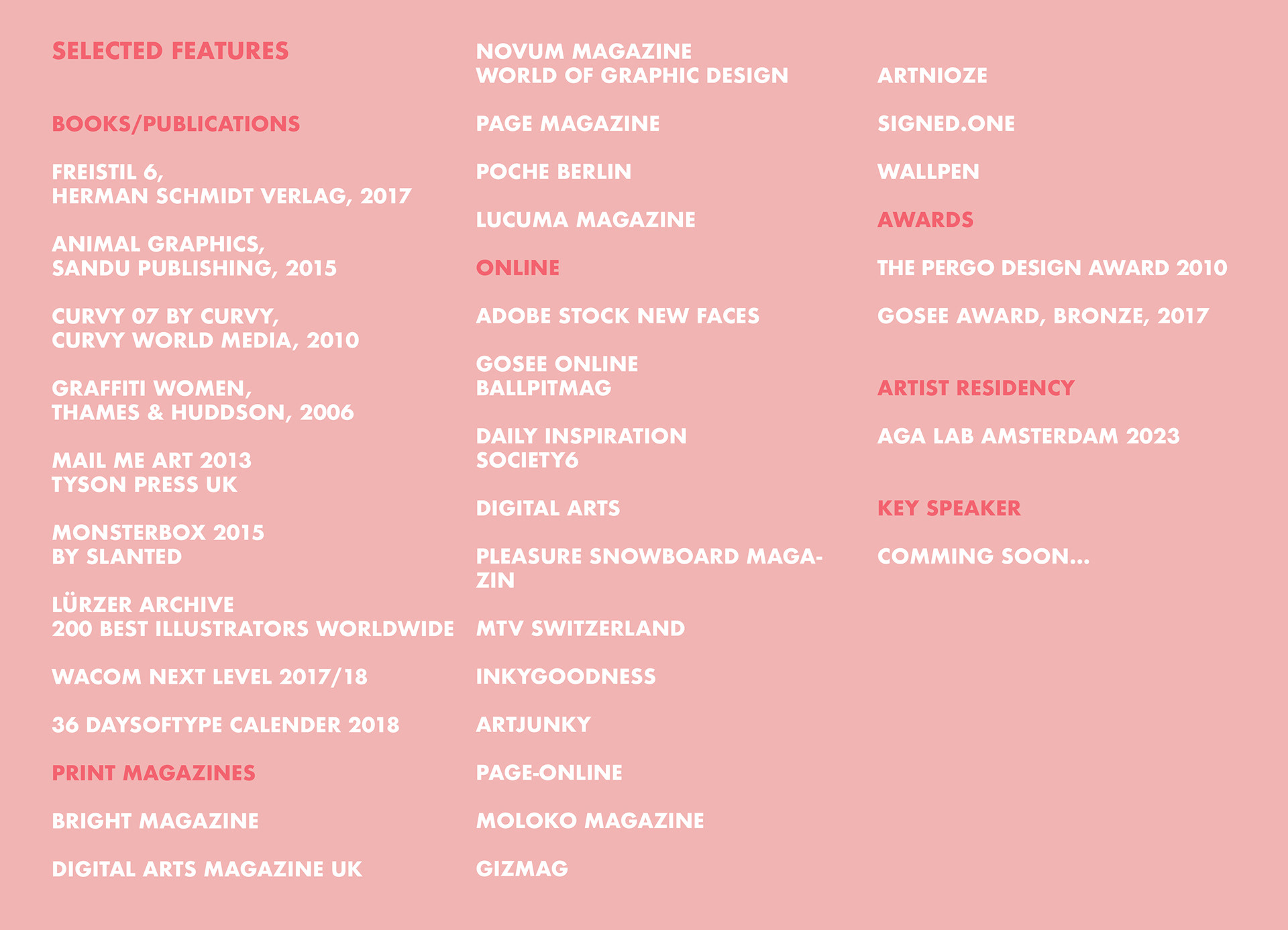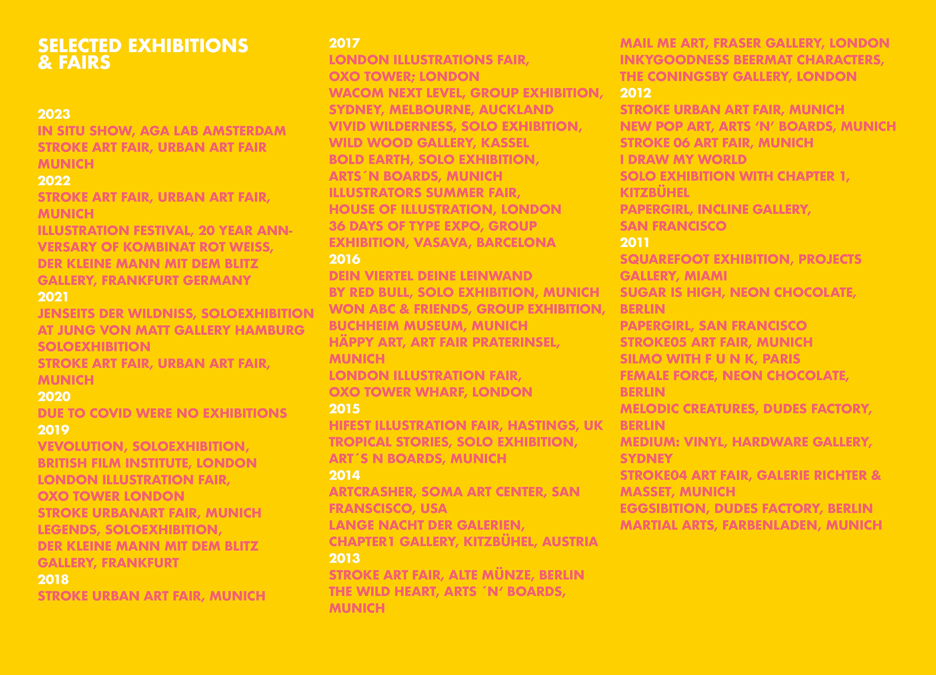 After earning my degree in Illustration and Visual Communication from the University of Augsburg and the London College of Communication in 2010, I launched my career as a freelance artist. Since then, I have collaborated with national and international clients and exhibited my work worldwide.