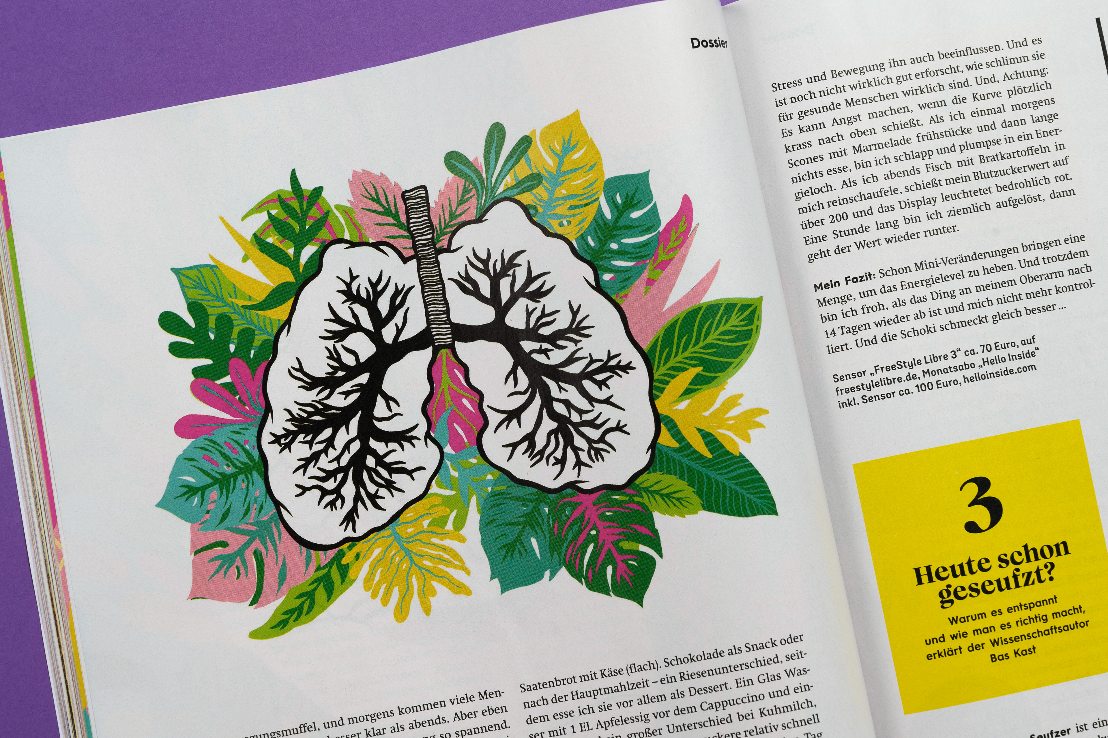 A selection of editorial illustrations I created for various magazines, including Brigitte Magazin and Letter Magazin