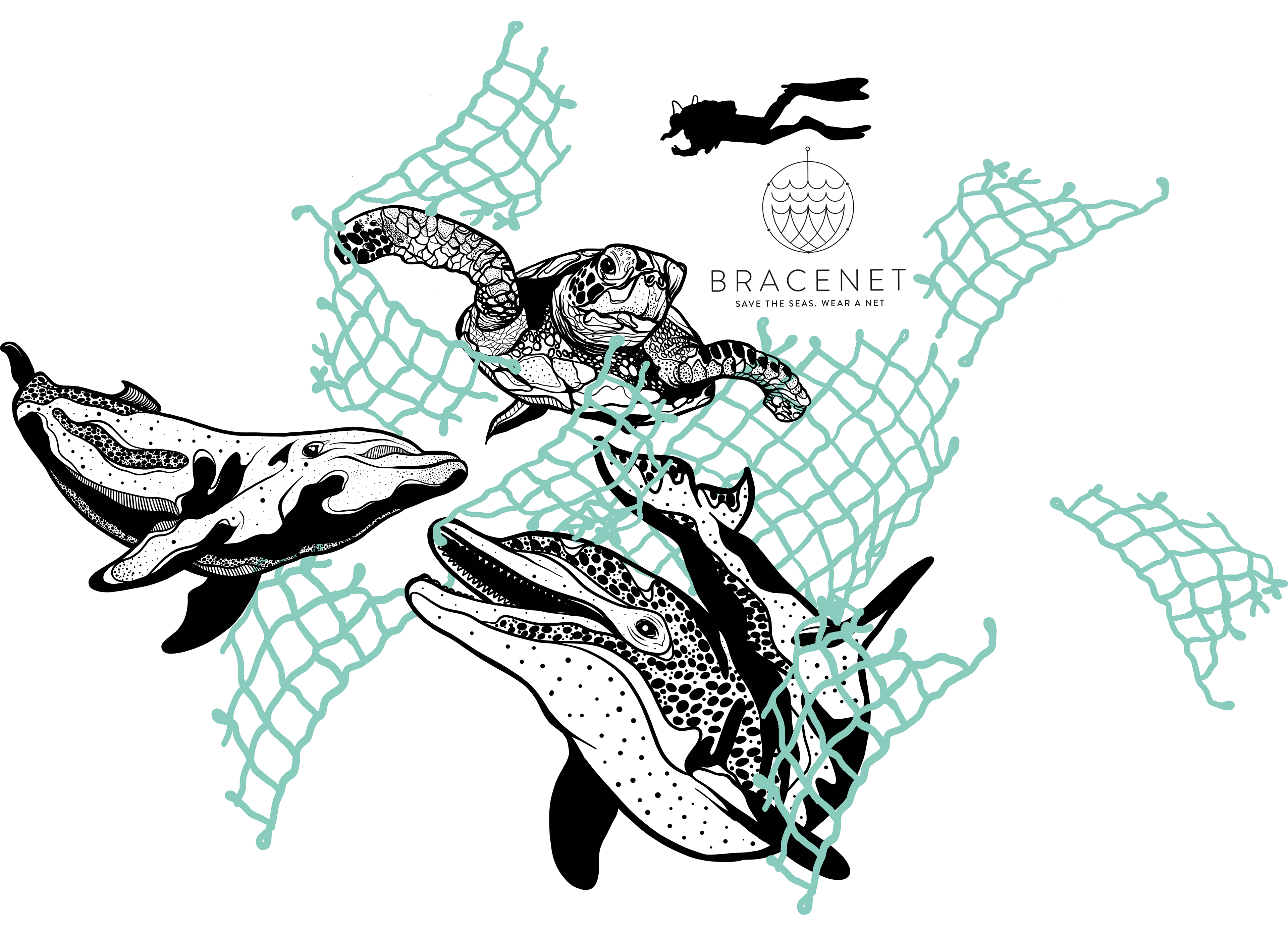 This bottle illustrates a diver who is coming to rescue the dolphins and sea turtles.